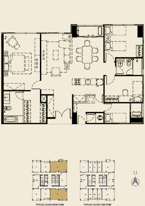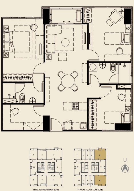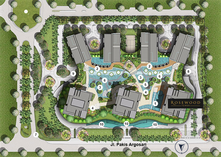 Diperkaya dengan aksen green courtyard bertemakan Tropical Riverine di Upper Ground Floor yang luas melingkupi seluruh tower, dan Private Sky Facilities. Setiap unit menawarkan kemewahan tersendiri dengan city, mountain, golf atau pool garden view yang cantik. Tower ROSEWOOD menawarkan 6 tipe premium dengan luas 36-176 m2.